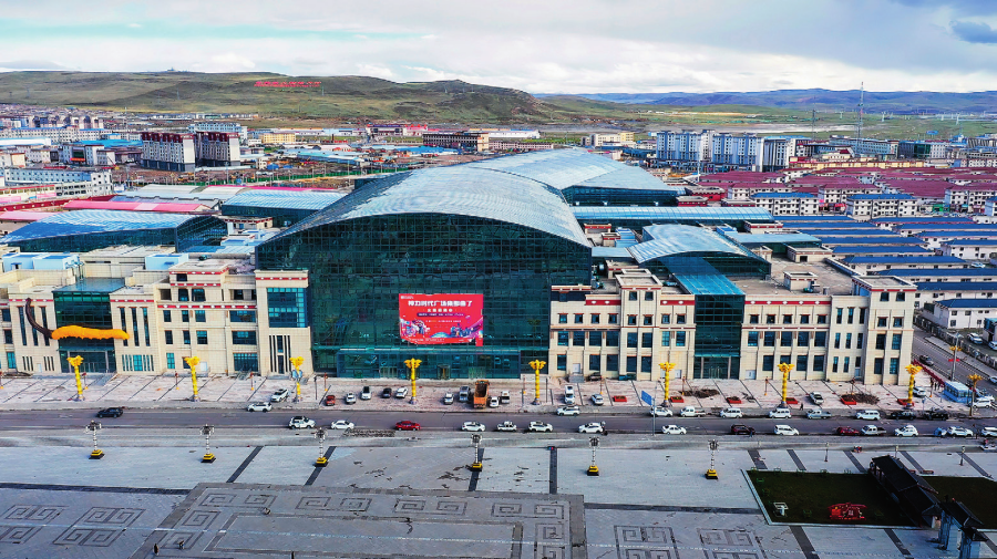 開闊的天空頂,通透的落地玻璃,融合現(xiàn)代與藏式建筑風格的內(nèi)飾……2024年年底,那曲首個商業(yè)綜合體預計將正式完工。