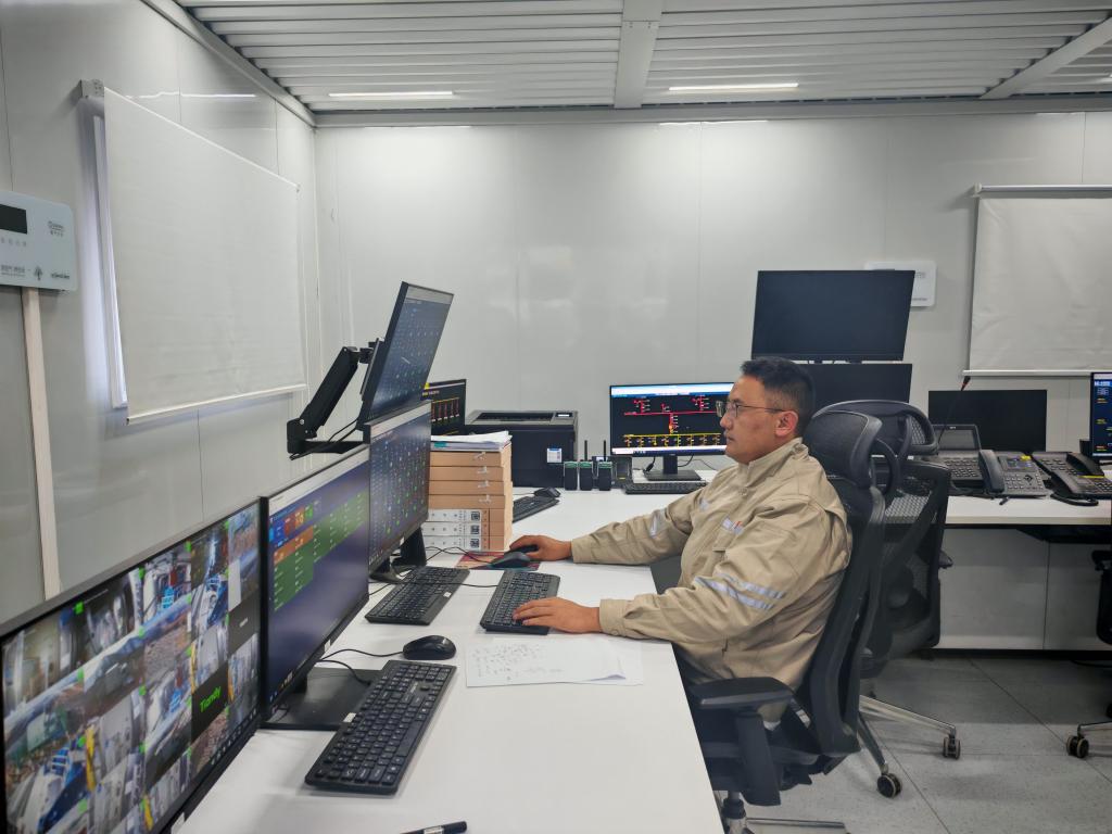 在西藏八宿縣,大唐八宿風(fēng)電場(chǎng)運(yùn)維技術(shù)員洛松澤仁在中控室監(jiān)測(cè)風(fēng)機(jī)運(yùn)行情況。(任明喬 攝)