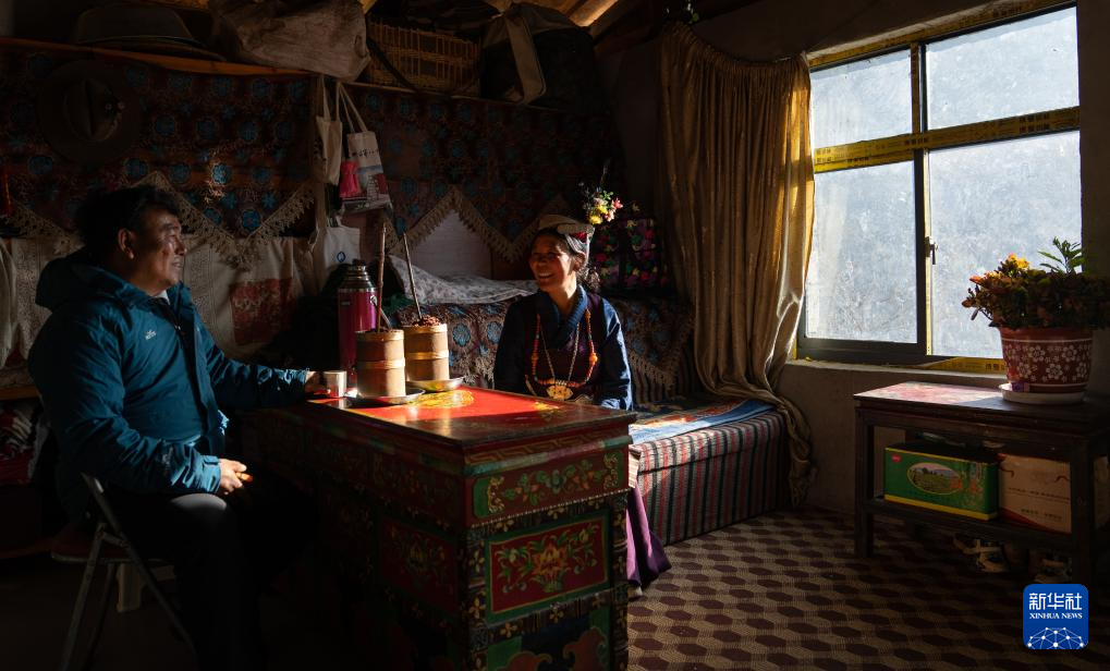 12月13日,陳塘鎮(zhèn)夏爾巴婦女仁增在家里和客人聊天。