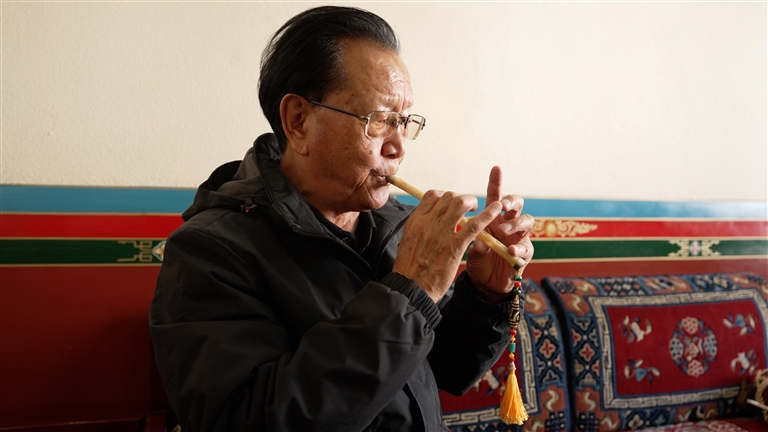 如今在西藏,不僅有像次旦這樣的非遺傳承人堅(jiān)守著鷹笛文化的傳承火種,還有那曲市藝術(shù)團(tuán)、西藏自治區(qū)歌舞團(tuán)、西藏大學(xué)藝術(shù)學(xué)院三處鷹笛傳習(xí)基地。鷹笛作為藏族古老的吹奏樂器,歷史悠久,曾輝煌一時(shí),如今卻瀕臨消逝。其獨(dú)特的構(gòu)造、優(yōu)美的音色、強(qiáng)烈的藝術(shù)表現(xiàn)力以及眾多獨(dú)特演奏技巧,在歷代音樂人的傳承下得以延續(xù),次旦和玉古先生成功申報(bào)非物質(zhì)文化遺產(chǎn)傳承人便是有力見證。