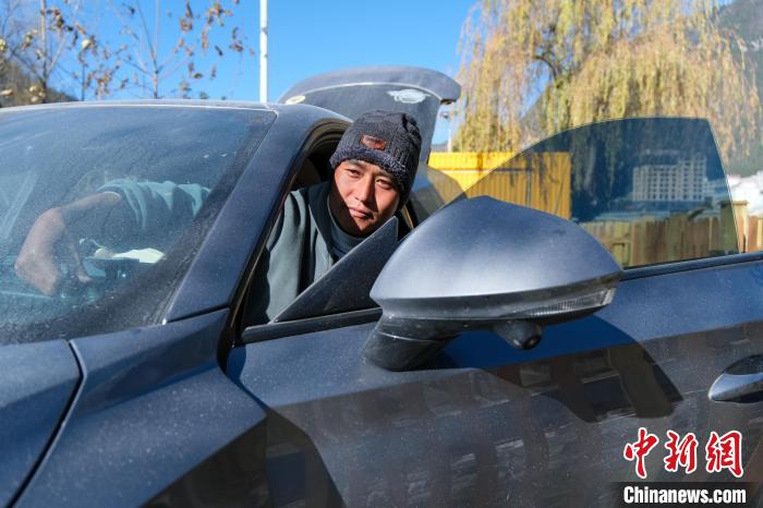 12月17日,來自江蘇昆山的自駕游客劉兵在西藏波密縣一營地內(nèi)休整。中新社記者 江飛波 攝
