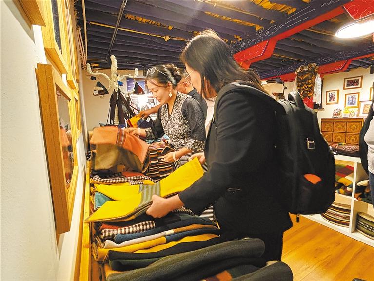 走進(jìn)夏扎大院的卓番林·措瓦店,琳瑯滿目的手工藝品令人目不暇接。從細(xì)節(jié)滿滿的玩偶到織藝精湛的藏毯,從匠心獨(dú)運(yùn)的手工編織包包到別具一格的民族飾品,無一不是手工藝人心血凝聚。卓瑪介紹,卓番林·措瓦力求融合傳統(tǒng)與現(xiàn)代,用飽含情感的產(chǎn)品,傳承精湛技藝,讓西藏手工藝融入家庭溫馨記憶。