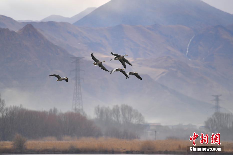 12月29日,冬日早晨,拉薩美如畫。拉薩河被晨光染成金色,河水靜靜流淌。西藏自治區(qū)拉薩市的拉魯濕地國家級自然保護區(qū)內,候鳥歡快,忙著覓食、嬉戲。遠處,布達拉宮與拉魯濕地相互映襯,構成了一幅絕美畫卷。圖為12月29日,斑頭雁、赤麻鴨等候鳥,在拉魯濕地覓食、嬉戲。貢確 攝