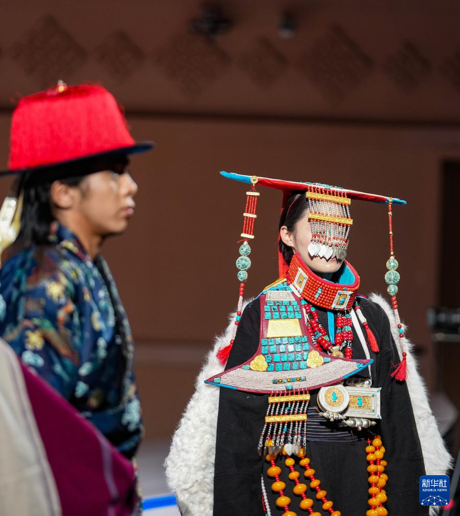 1月5日,模特在西藏傳統(tǒng)服飾秀上進(jìn)行展示。新華社記者 晉美多吉 攝