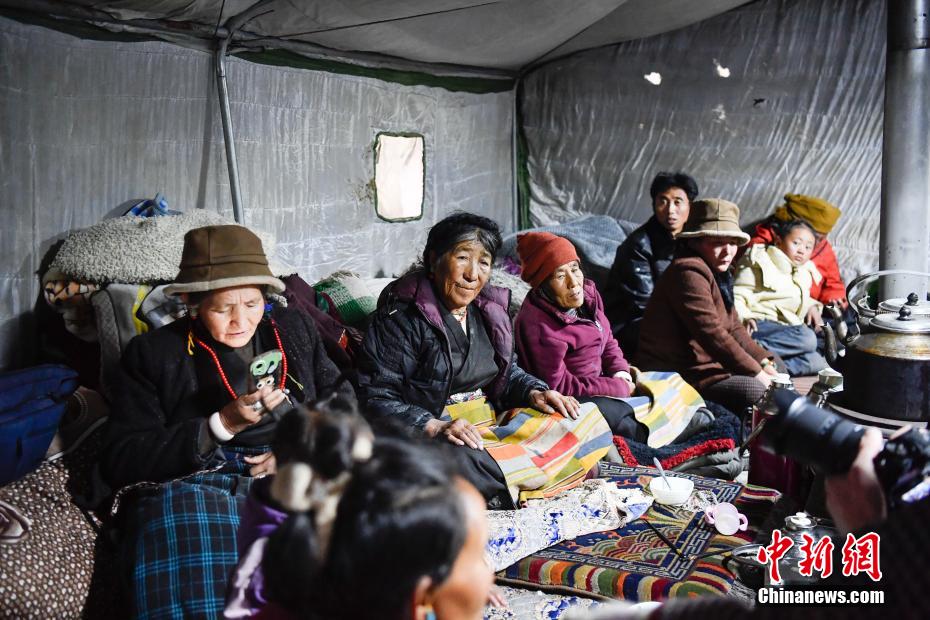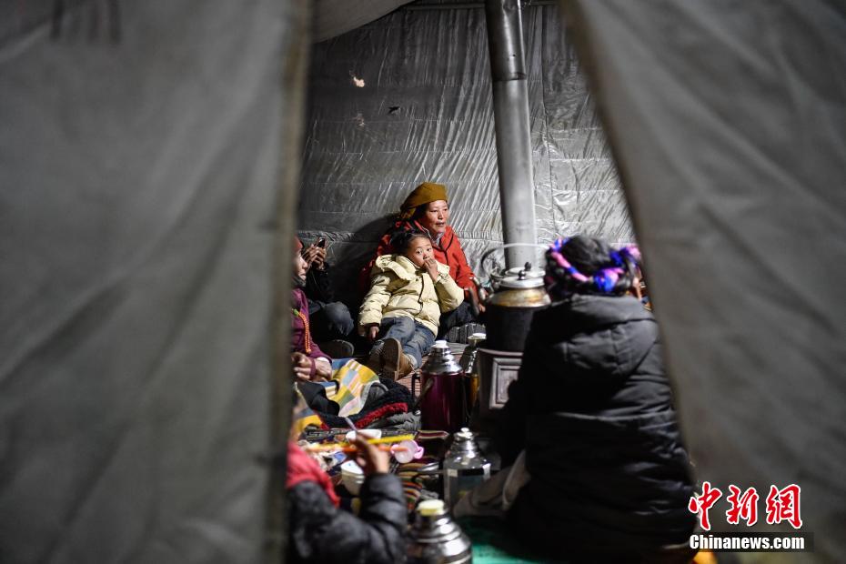 1月7日9時5分,西藏自治區(qū)日喀則市定日縣措果鄉(xiāng)附近(東經(jīng)87.45度,北緯28.50度)發(fā)生6.8級地震。日喀則市官方介紹,經(jīng)初步排查,截至當日15時,地震共造成95人遇難,130人受傷,房屋損毀正在統(tǒng)計中。圖為日喀則拉孜縣境內(nèi)的村民在臨時搭建的帳篷里準備過夜。中新社記者 貢嘎來松 攝