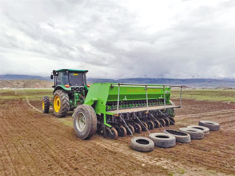 “2023年,草原生態(tài)修復(fù)治理試驗(yàn)示范項(xiàng)目在我們村退化草原上免耕補(bǔ)播了1萬畝草種,這兩年我們村的草長(zhǎng)高了,冬天風(fēng)沙小了,牛羊也不愁吃的了。希望以后能在我們村再多種些草?!蹦乔猩釁^(qū)那么切鄉(xiāng)示范區(qū)崗拉村黨支部書記洛扎感慨地說。