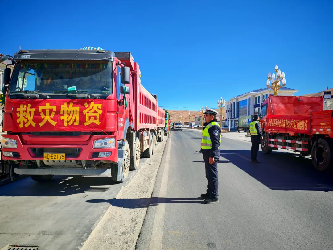 一輛輛物資車,滿載著重振災(zāi)區(qū)的曙光,源源不斷地向災(zāi)區(qū)輸送急需的生活物資。抗震救災(zāi)分秒必爭,交警大隊、查務(wù)一級公安檢查站聯(lián)合各鄉(xiāng)鎮(zhèn)派出所的民輔警們化身保通員,在關(guān)鍵路段與交通樞紐織就一張24小時不間斷的道路保通“守護網(wǎng)”,全力保障駛向定日重災(zāi)區(qū)的物資運輸車一路暢行。破曉,晨曦微露,他們已精神抖擻地站在崗位,為物資車指引方向;深夜,萬籟俱寂,他們依舊堅守,哪怕嗓音沙啞,仍堅定指揮調(diào)度。他們時刻保持警惕,全力以赴確保這條 “生命通道” 暢通無阻,讓物資以最快速度送達受災(zāi)群眾手中。