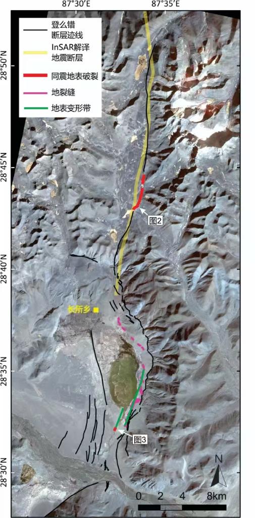 中國(guó)地震局地質(zhì)研究所、四川省地震局聯(lián)合調(diào)查團(tuán)隊(duì)1月9日在西藏日喀則定日縣長(zhǎng)所鄉(xiāng)雜村南發(fā)現(xiàn)定日地震同震地表變形帶,同震形變帶延伸超過(guò)10千米。