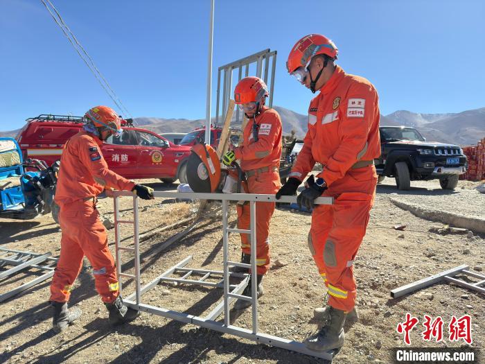圖為消防指戰(zhàn)員正在搭設帳篷。西繞拉翁 攝