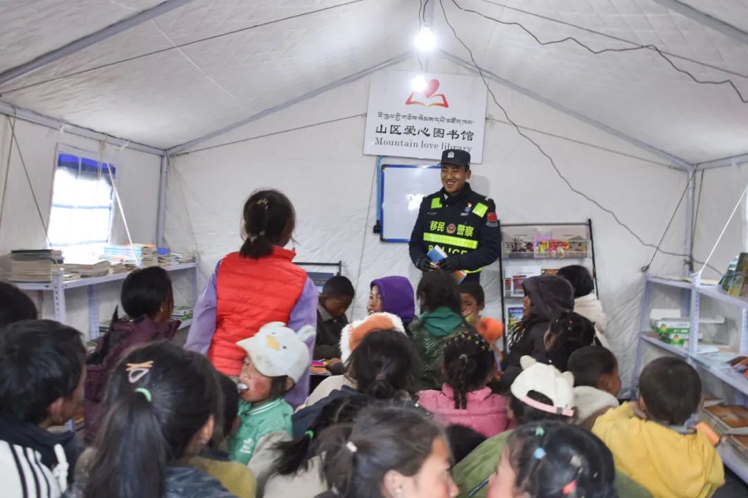 地震發(fā)生后,西藏邊檢總站日喀則邊境管理支隊救援民警不知疲倦地奔走在震中3個受損嚴(yán)重的村莊,了解震后群眾生產(chǎn)生活情況,協(xié)助解決面臨的各種困難問題。面對240頂帳篷,230戶1200余名災(zāi)民,民警們組建了抗震救災(zāi)雜村、嘎布村和玉白村臨時警務(wù)室,配備警力30人,實(shí)行24小時勤務(wù)模式,主要承擔(dān)交通疏導(dǎo)、宣傳教育、隱患排查、秩序維持、輔導(dǎo)功課、協(xié)助地方開展其他救援等任務(wù),同時設(shè)置常用藥箱,方便群眾用藥需求,被群眾親切地稱為“建在身邊的派出所”。