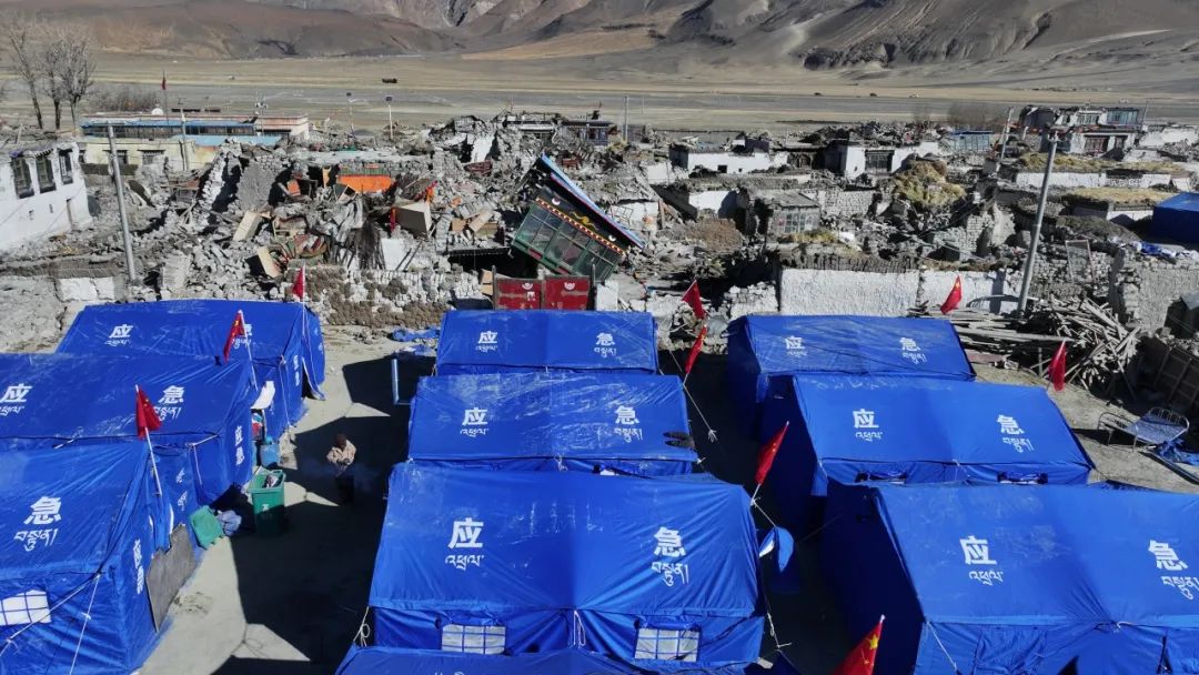圖為日喀則邊境管理支隊民警在定日縣長所鄉(xiāng)玉白村安置點(diǎn)為群眾搭建帳篷。郭遠(yuǎn)敬 攝