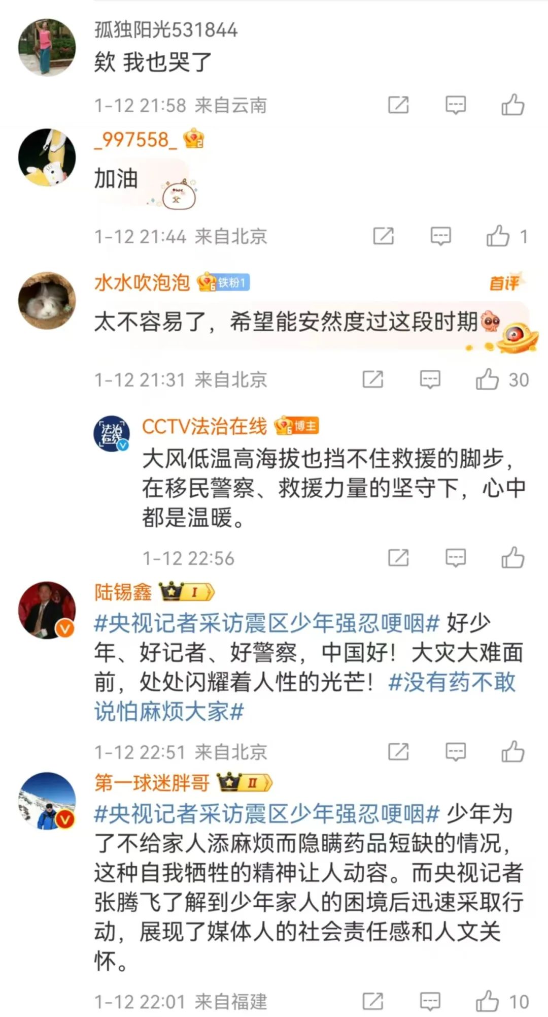 詞條#央視記者采訪震區(qū)少年強(qiáng)忍哽咽#