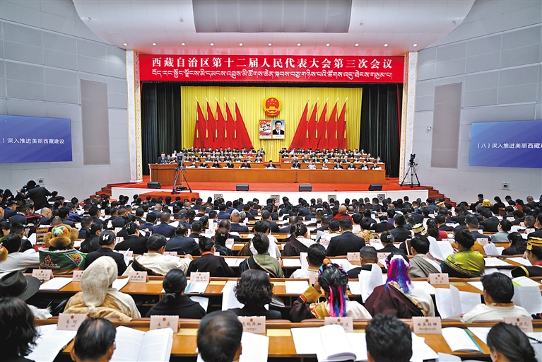 自治區(qū)十二屆人大三次會議開幕會現(xiàn)場。記者 旦增西旦 攝