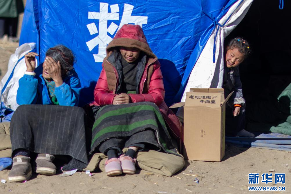 1月7日,古榮村的受災(zāi)群眾在已成廢墟的家門(mén)口哭泣。新華社記者 晉美多吉 攝