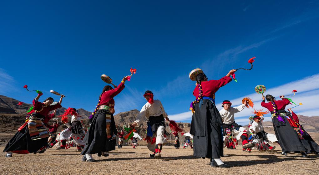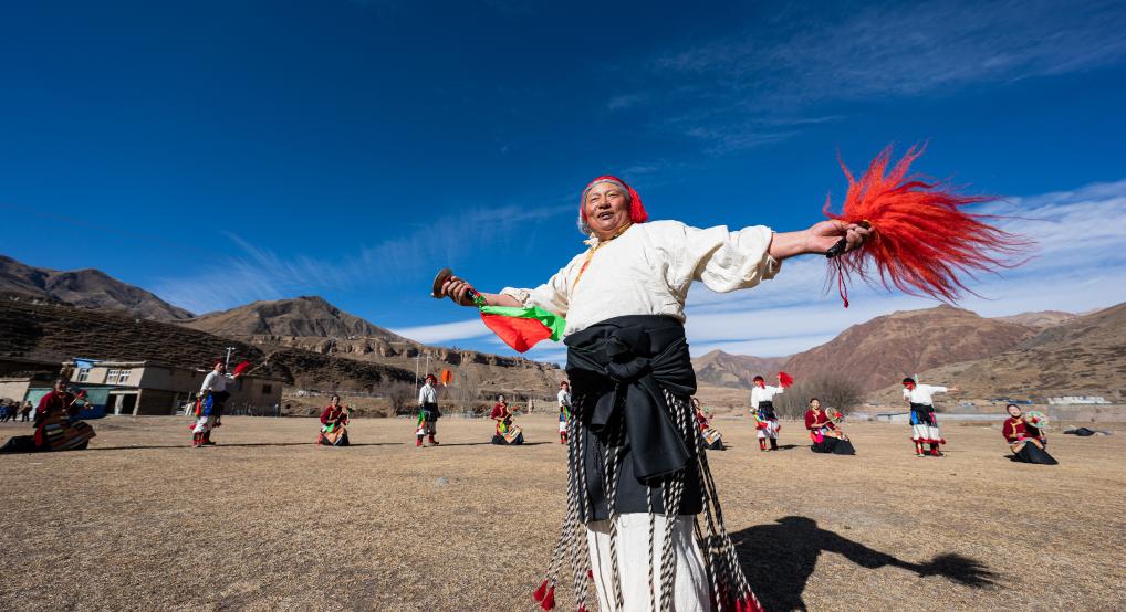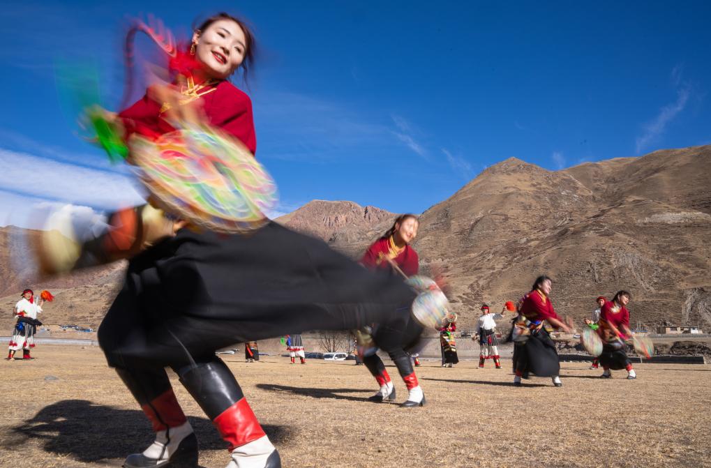 新年伊始,在西藏昌都市丁青縣尺犢鎮(zhèn)的草壩上,烏巴村文藝演出隊(duì)正在熱火朝天地排練。盡管寒風(fēng)凜冽,但激昂的鼓點(diǎn)和熱烈的音樂,讓這片土地充滿了生機(jī)與活力。