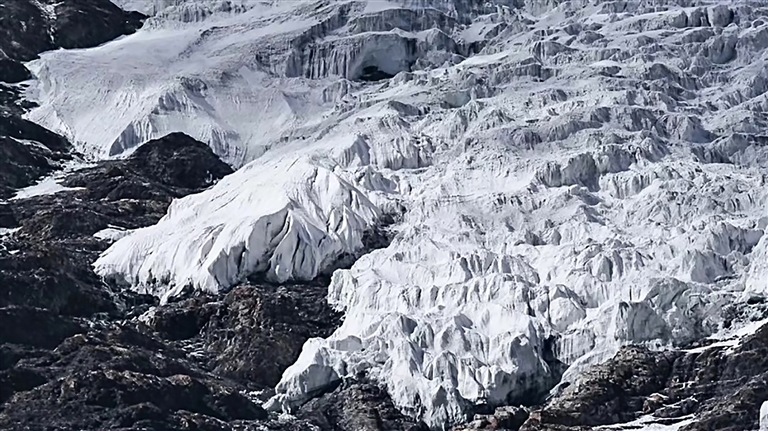 感受完藏歷新年的歡樂氛圍后,便可繼續(xù)前往卡若拉冰川??ㄈ衾ㄊ俏鞑鼐嚯x公路最近的冰川,也是電影《紅河谷》的取景地。盡管已到2月末、3月初,但由于海拔較高,冰川受氣溫回暖的影響較小。在距離卡若拉冰川不遠處,有一處小眾打卡點——恰央措,近年來受到越來越多人的關(guān)注。恰央措的藍冰呈深藍色,冰下布滿密密麻麻的白色網(wǎng)狀紋路,景象十分壯觀,拍照效果極佳。