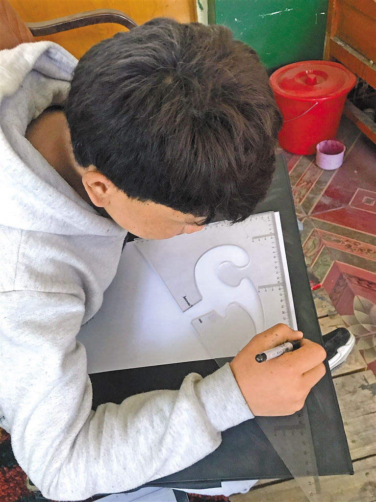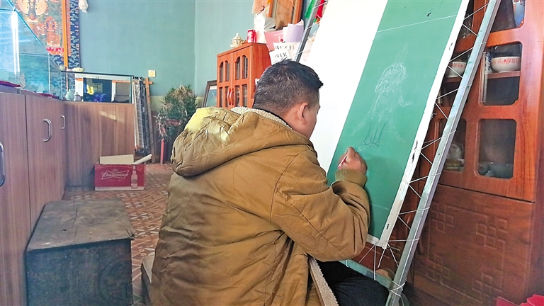 “那段時間是最難熬的,每天睜開眼除了吃飯,其他時間都在畫畫?!甭遄犯嬖V記者,當他真正開始學習時,才深刻體會到要想成為唐卡手藝人,需要付出更多努力?!耙苍脒^放棄,但還是咬咬牙堅持了下來?!闭f到這里,洛追有些靦腆地笑了笑。