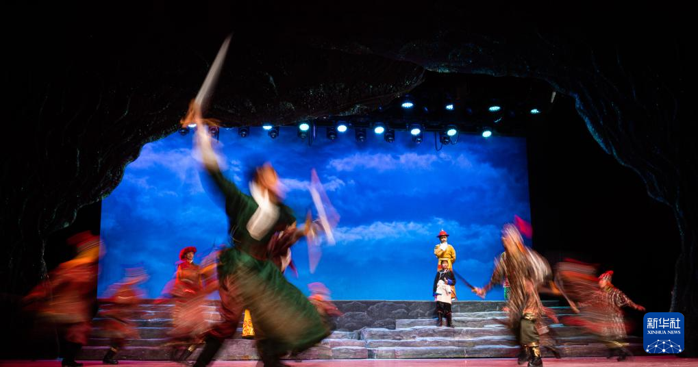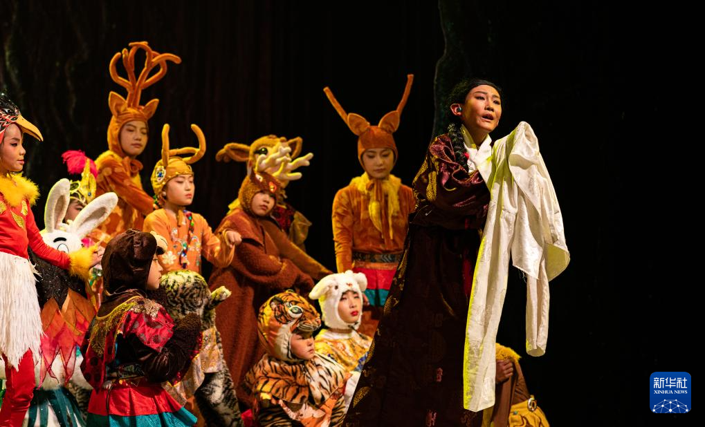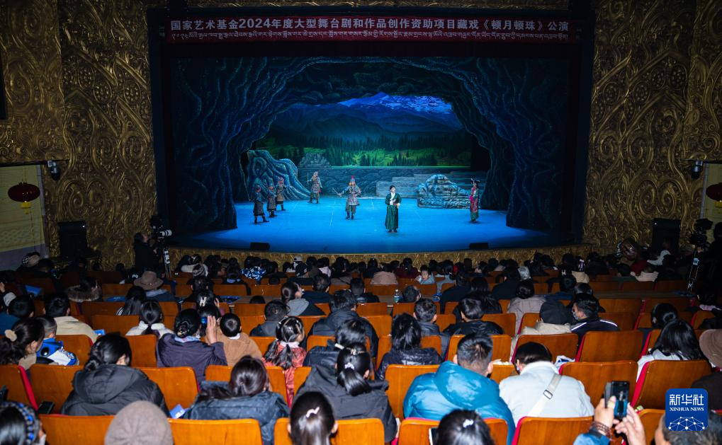 西藏首部少兒舞臺劇藏戲《頓月頓珠》演出現(xiàn)場(2月11日攝)。新華社記者 丁增尼達(dá) 攝