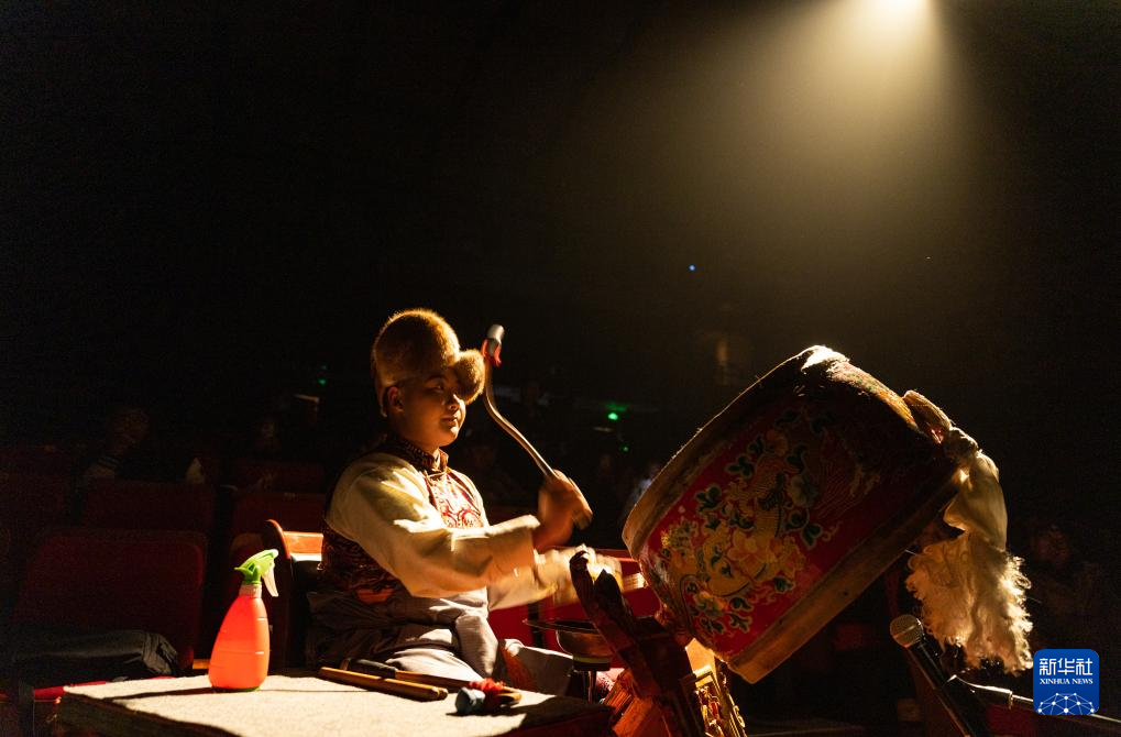 小演員敲鑼打鼓為藏戲表演伴奏(2月11日攝)。新華社記者 丁增尼達(dá) 攝