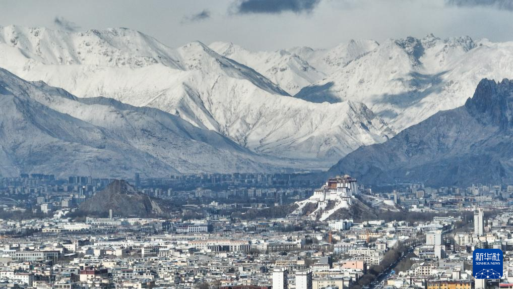 這是2月16日拍攝的降雪后的拉薩市區(qū)(無人機(jī)照片)。新華社記者 晉美多吉 攝