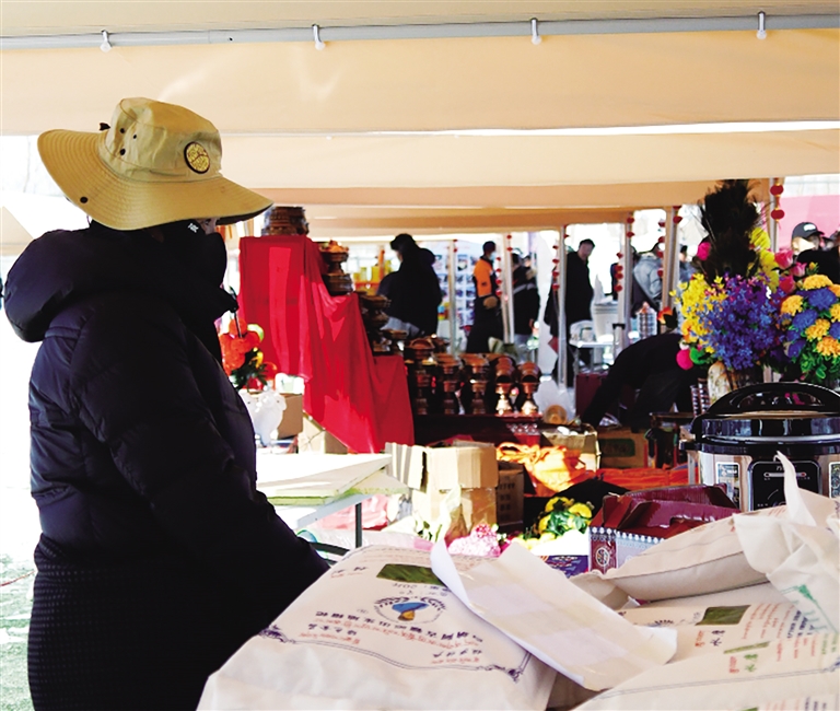 走進(jìn)體育場,首先映入眼簾的是巨型藏式切瑪五彩蛇形龍門架,其色彩絢麗、造型別致,承載著藏族人民對新年的美好祈愿。由五彩蛇形帳篷搭建的300個(gè)展位整齊排列,展位上擺滿了琳瑯滿目的商品。五彩麥穗在微風(fēng)中輕輕擺動(dòng),各類奶制品散發(fā)著誘人的奶香,還有各式各樣的藏式年貨、傳統(tǒng)手工藝品、農(nóng)副產(chǎn)品以及現(xiàn)代科技產(chǎn)品,令人目不暇接。