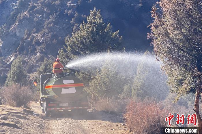 圖為西藏左貢森林消防在林區(qū)干燥區(qū)域開展增濕作業(yè)。姚天銳 攝