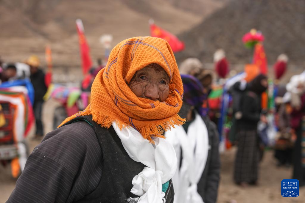 在春耕大典上,白姆老人(左二)和鄉(xiāng)親一起跳鍋莊(3月16日攝)。新華社記者 晉美多吉 攝