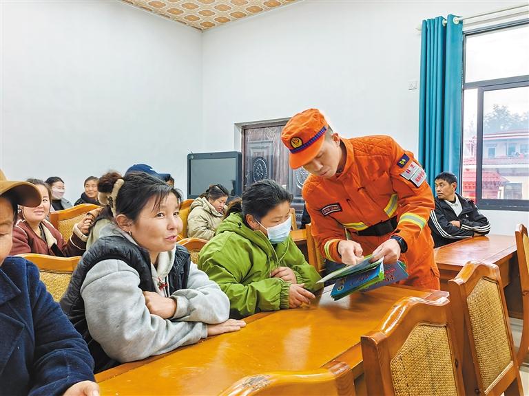在墨脫縣背崩鄉(xiāng),消防隊員設(shè)立宣傳點,擺放宣傳展板,并向當?shù)厝罕姲l(fā)放森林防火宣傳手冊,用通俗易懂的語言和生動形象的插畫,展示森林防火的重要性、林火常見隱患以及遇到林火時的應(yīng)對措施。同時,消防隊員還組成宣傳小分隊,深入偏遠村落,進行入戶宣傳,深入淺出地講解森林防火知識,結(jié)合實際案例,讓村民深刻認識到森林火災(zāi)對生命財產(chǎn)和生態(tài)環(huán)境的巨大危害。