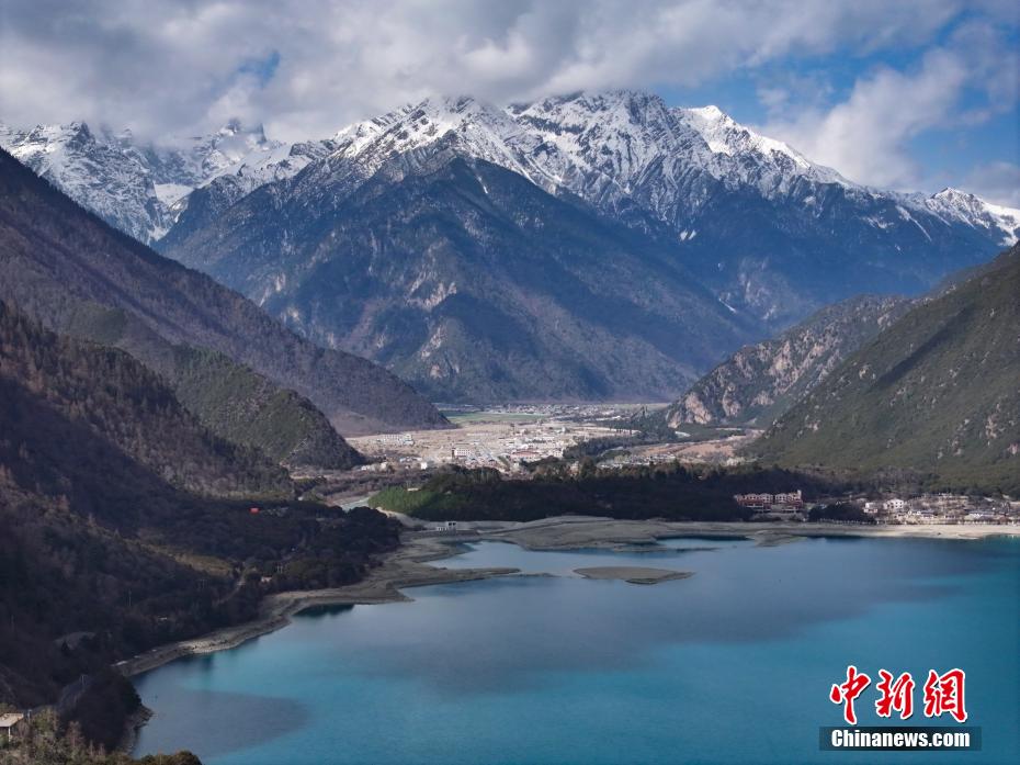 3月30日,航拍巴松措春日風(fēng)景。巴松措又名錯高湖,位于西藏自治區(qū)林芝市工布江達縣,是西藏首個自然風(fēng)景類國家5A級旅游風(fēng)景區(qū)。從空中俯瞰巴松措,碧藍的湖水被雪山、森林環(huán)繞,宛如鑲嵌在群山間的“藍寶石”。(無人機照片)中新社記者 馬銘言 攝