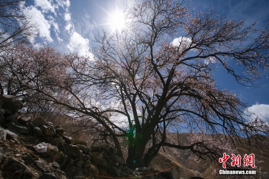 3月下旬,高原已是一片春意。西藏拉薩市區(qū)拉薩河南岸慈覺林的古桃樹進入盛花期,3月30日恰逢周末,不少市民游客前往賞花“打卡”,在桃樹下野餐等,享受高原春日風光。圖為3月30日,拉薩慈覺林的桃花。桃樹上是藏族民眾在藏歷新年時綁的經(jīng)幡。江飛波 攝