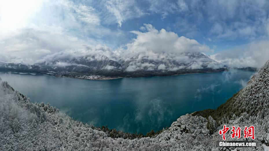 巴松錯位于西藏林芝工布江達縣境內(nèi),地處巴河上游的高山峽谷中,是西藏首個自然風景類國家5A級旅游景區(qū)。4月5日,巴松錯迎來一場春雪,雪后四周原始森林猶如蒙上潔白面紗,湖面宛如一面藍寶石鑲嵌其中,風光如畫。圖為4月5日,巴松錯與遠處的雪山風光。中新社記者 江飛波 攝