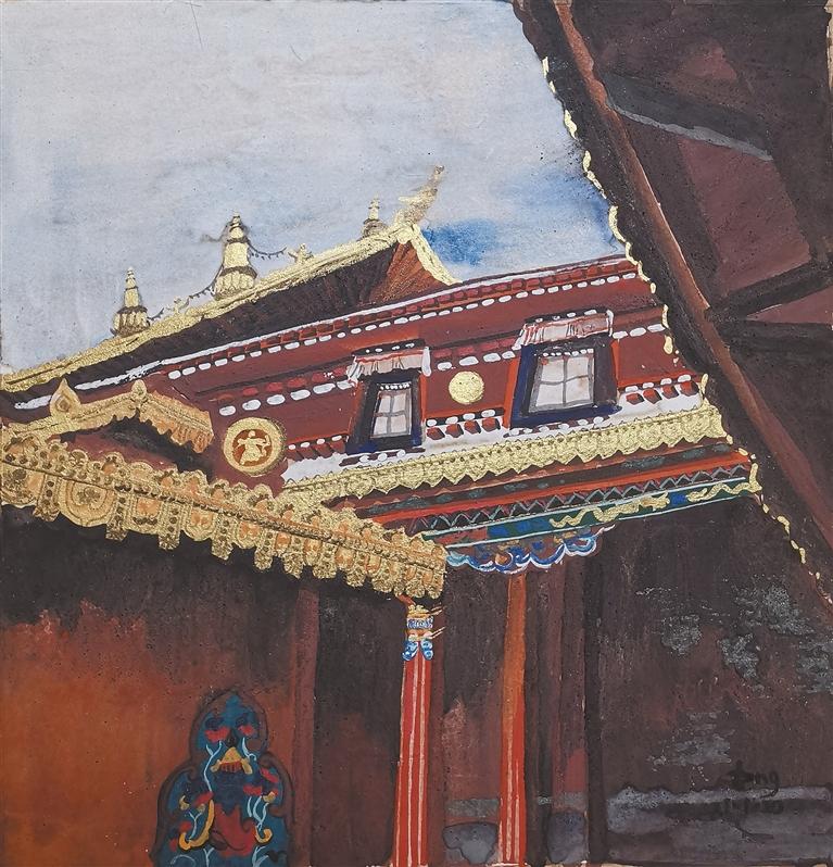 她畫筆下描繪的古城拉薩、朵朵白云、一草一木、民居建筑和人物形象都融入了對(duì)于藏文化的理解和對(duì)西藏美好生活的熱愛(ài)之情。她將這些景象都轉(zhuǎn)化為自己的藝術(shù)語(yǔ)言并賦予在了一層層傳統(tǒng)麻紙之上。在她的創(chuàng)作世界里,藝術(shù)是一場(chǎng)結(jié)合了研究的探索,是一場(chǎng)永不停歇的心靈對(duì)話,她希望一直能用自己的藝術(shù)語(yǔ)言堅(jiān)持傳統(tǒng)繪畫方式,不斷摹古繼新。