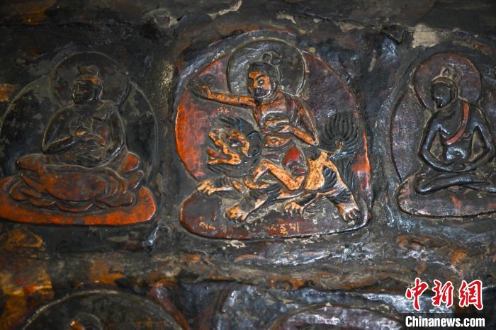 4月27日,記者探訪了當雄縣貢堂鄉(xiāng)沖嘎爾村康馬寺的瑪尼拉康。瑪尼拉康是該寺除修行洞之外的早期宗教活動場所,也是寺院里最古老的建筑。這里保存著令人驚嘆的石刻造像墻,這些石刻距今已有三百年歷史?,斈崂低庥^普通,但其室內六面墻上整齊地貼滿了浮雕石刻板,共計1213塊(僅一塊缺失)。石刻內容豐富,涵蓋了藏傳佛教各宗各派的本尊、祖師、佛母菩薩等,造型多姿多樣,線條清晰流暢。這處石刻造像墻對于研究西藏傳統(tǒng)雕刻、藏傳佛教以及歷史具有重大意義。中新社記者 貢嘎來松 攝