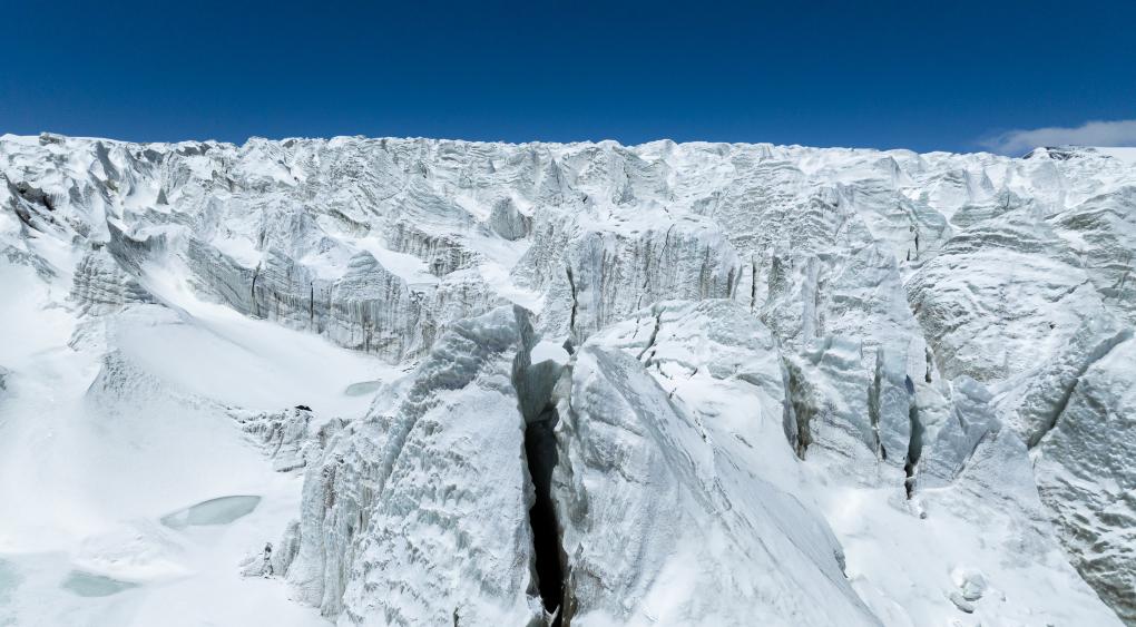 這是那曲市羌塘無人區(qū)內(nèi)的藏色崗日冰川(無人機照片,2024年5月11日攝)。新華社記者 丁增尼達 攝