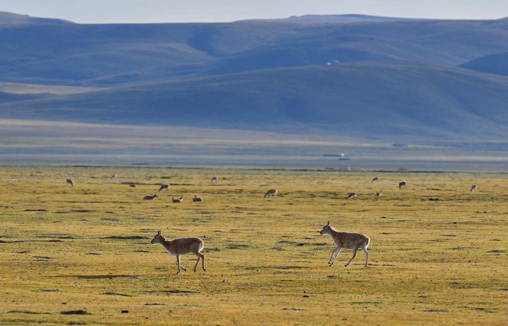 色林錯國家級自然保護區(qū)那曲市申扎縣片區(qū)里的藏羚羊(2024年8月26日攝)。新華社記者 張汝鋒 攝