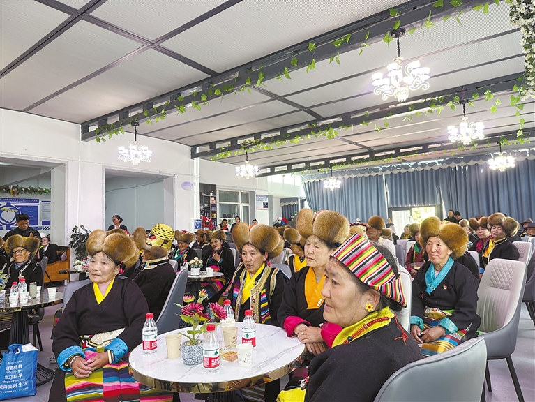 “山南瓊嘎頂·錦礱頤樂之家” 老年食堂揭牌儀式現(xiàn)場。 山南市乃東區(qū)澤當(dāng)街道辦供圖