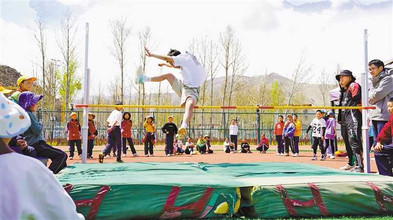 圖為學生在參加跳高比賽。記者 格桑倫珠 攝