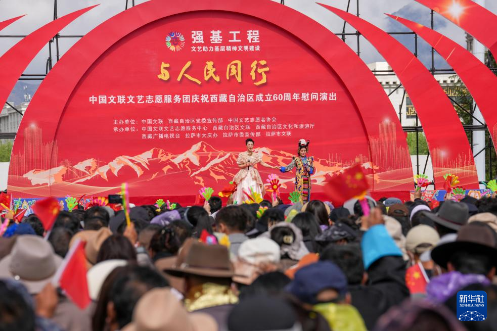 5月25日,由中國文聯(lián)、西藏自治區(qū)黨委宣傳部、中國文藝志愿者協(xié)會(huì)主辦的“與人民同行”中國文聯(lián)文藝志愿服務(wù)團(tuán)慶祝西藏自治區(qū)成立60周年慰問演出在位于拉薩的西藏會(huì)展中心廣場舉行。