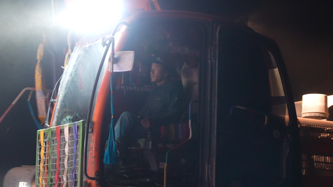 當夜幕籠罩村莊,大風呼嘯,旺加仍未歸家。他戴上安全帽,出現(xiàn)在燈火通明的工地。機械轟鳴,人聲交織。旺加仔細巡視基坑、鋼筋,履行監(jiān)督之責;順手遞工具,用帶著藏語腔調的漢語講著接地氣的笑話驅散疲憊。