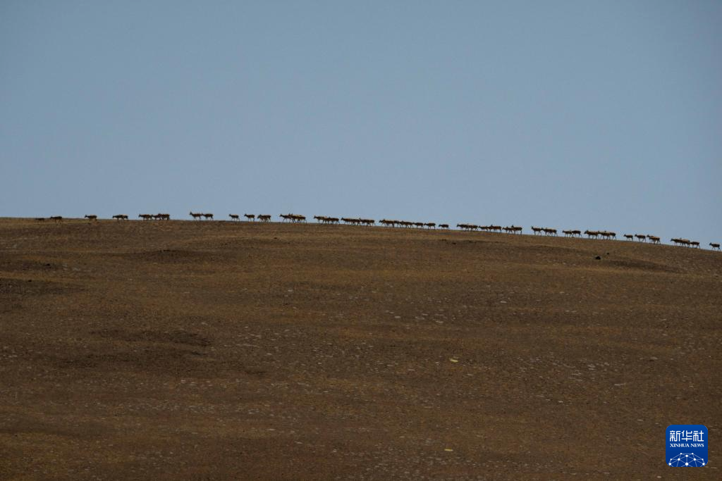 羌塘國家級自然保護(hù)區(qū)核心區(qū)繁殖遷徙路上的雌性藏羚羊群。(6月10日攝)。新華社記者 姜帆 攝