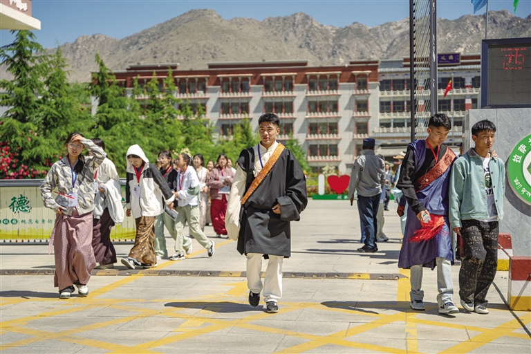 考生走出考場(chǎng)。記者 桑旦歐珠 攝