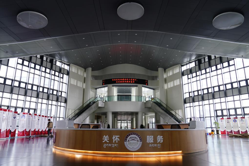 西藏自治區(qū)醫(yī)院(四川大學(xué)華西醫(yī)院西藏醫(yī)院)門診綜合大廳。新華社記者 劉洪明 攝