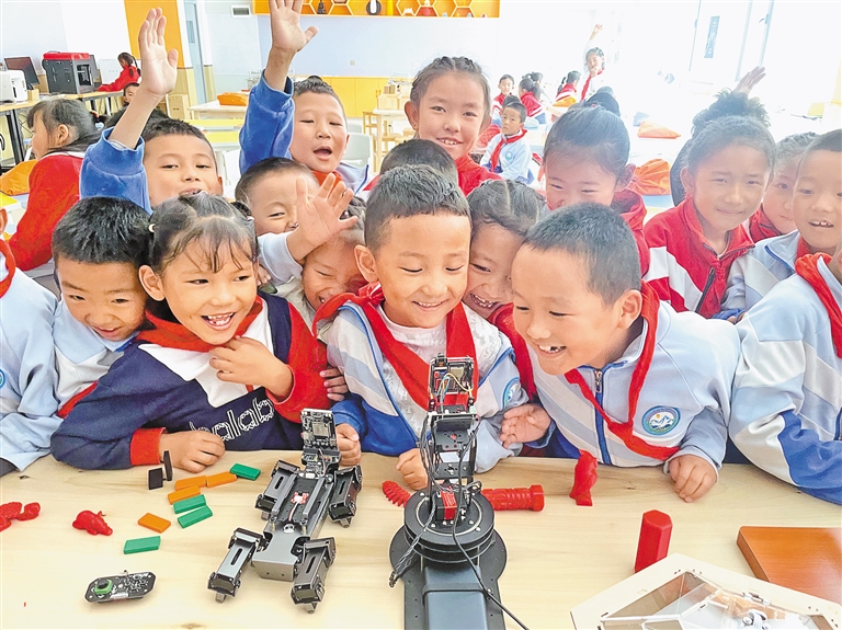 在桑珠孜區(qū)青島小學(xué)的科學(xué)課堂上,智能實(shí)驗(yàn)臺(tái)前圍滿了興致勃勃的孩子,他們手持 3D 打印筆,精心繪制著心中的“太空基地”。作為西藏首個(gè)啟動(dòng)“ STEM ”科學(xué)課程的地區(qū),這里不僅建成了全區(qū)首個(gè)小學(xué)科創(chuàng)實(shí)驗(yàn)室,還被教育部認(rèn)定為西藏唯一的全國(guó)“白名單”科創(chuàng)賽事基層組織單位?!耙郧埃⒆觽冎荒軓恼n本上了解實(shí)驗(yàn),現(xiàn)在能親手操作機(jī)器人、設(shè)計(jì)航天模型。”青島小學(xué)黨支部書(shū)記周杰介紹道。科創(chuàng)課程的開(kāi)展,如同一把鑰匙,打開(kāi)了孩子們創(chuàng)新思維和科學(xué)探索的大門,為高原青少年搭建起展示科學(xué)素養(yǎng)與創(chuàng)新能力的舞臺(tái),推動(dòng)當(dāng)?shù)亟逃聵I(yè)邁向新高度。