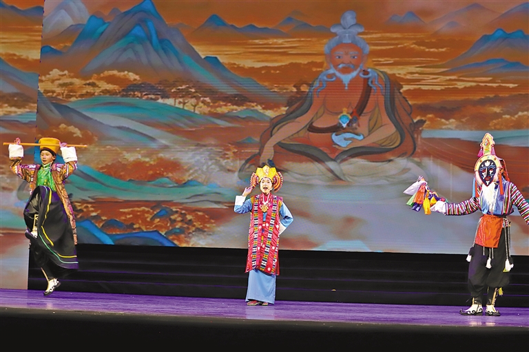 舞臺(tái)中央,12歲的其美卓嘎身著錦繡華服,以清亮唱腔和靈動(dòng)演繹,將文成公主的溫婉堅(jiān)毅展現(xiàn)得淋漓盡致?!爱?dāng)我穿上戲服、唱起‘漢藏情誼潔如璧’時(shí),仿佛真的穿越到千年前的和親之路?!毖莩鼋Y(jié)束后,小姑娘眼中閃爍著興奮的光芒,“原來民族團(tuán)結(jié)的故事,就藏在這些古老而動(dòng)人的戲文里?!逼涓赣H倫珠難掩自豪:“文成公主促進(jìn)了漢藏交融,女兒能表演這個(gè)節(jié)目,用藏戲詮釋民族團(tuán)結(jié),是我們?nèi)业尿湴?!?/p>