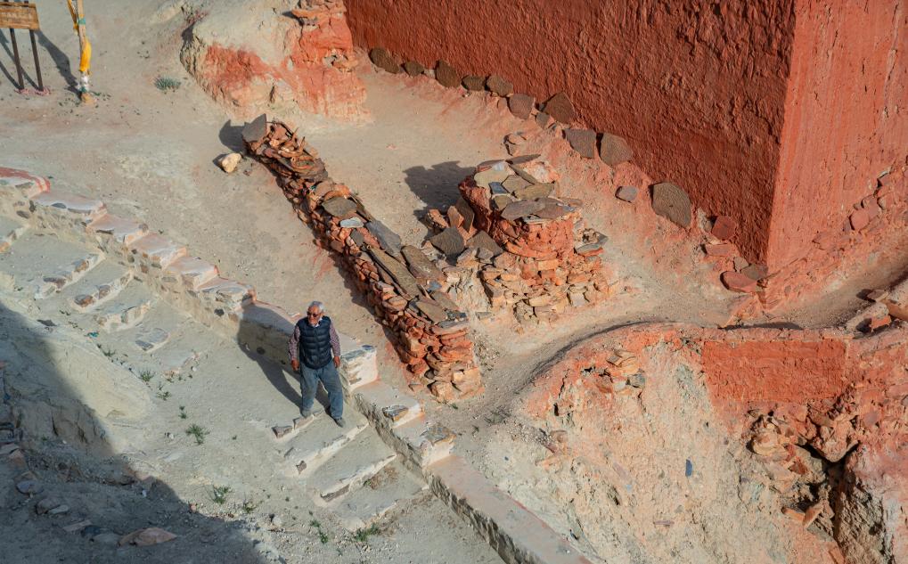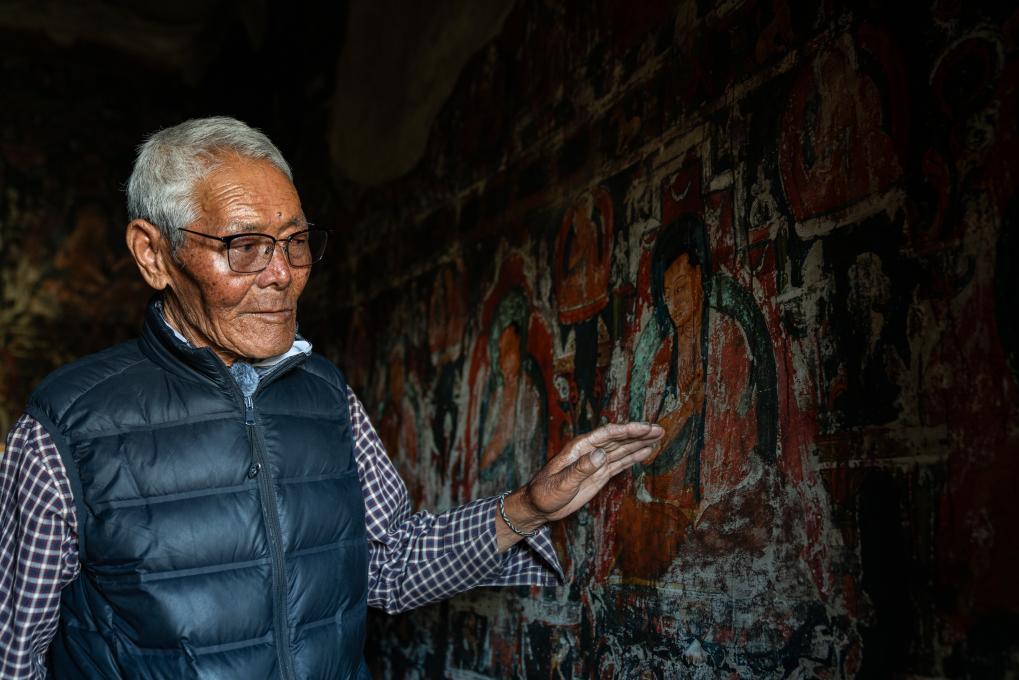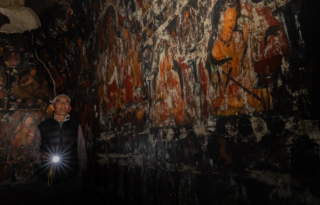 仁增旺扎巡查各個(gè)石窟,這是他多年來(lái)的習(xí)慣(2023年5月26日攝)。