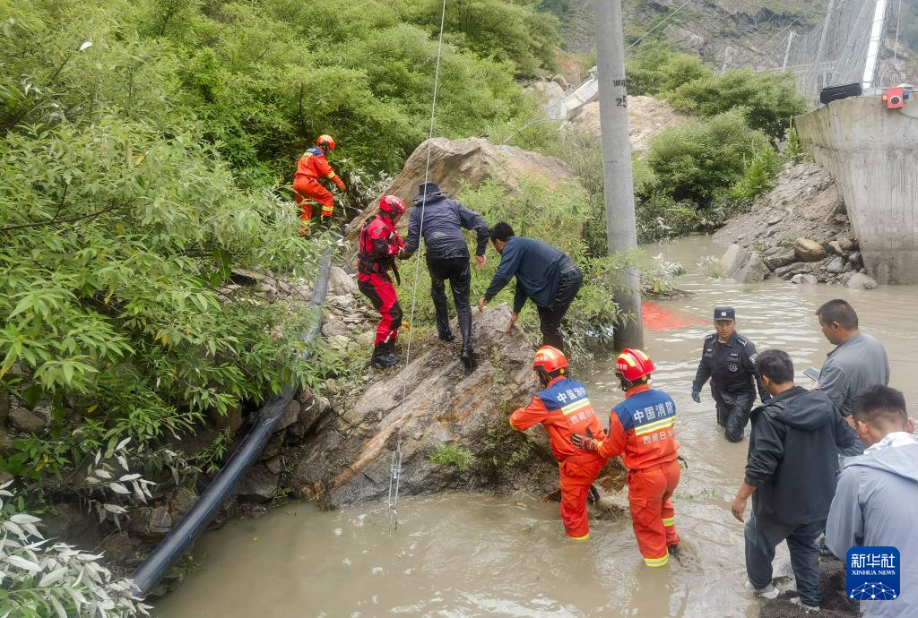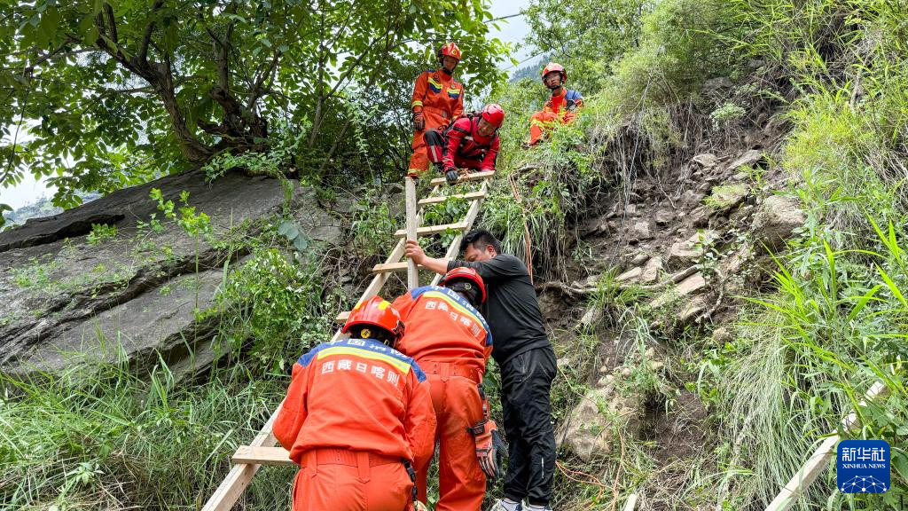 7月8日,西藏消防救援總隊救援人員在救災(zāi)現(xiàn)場疏散被困人員。新華社發(fā)(徐達富攝)