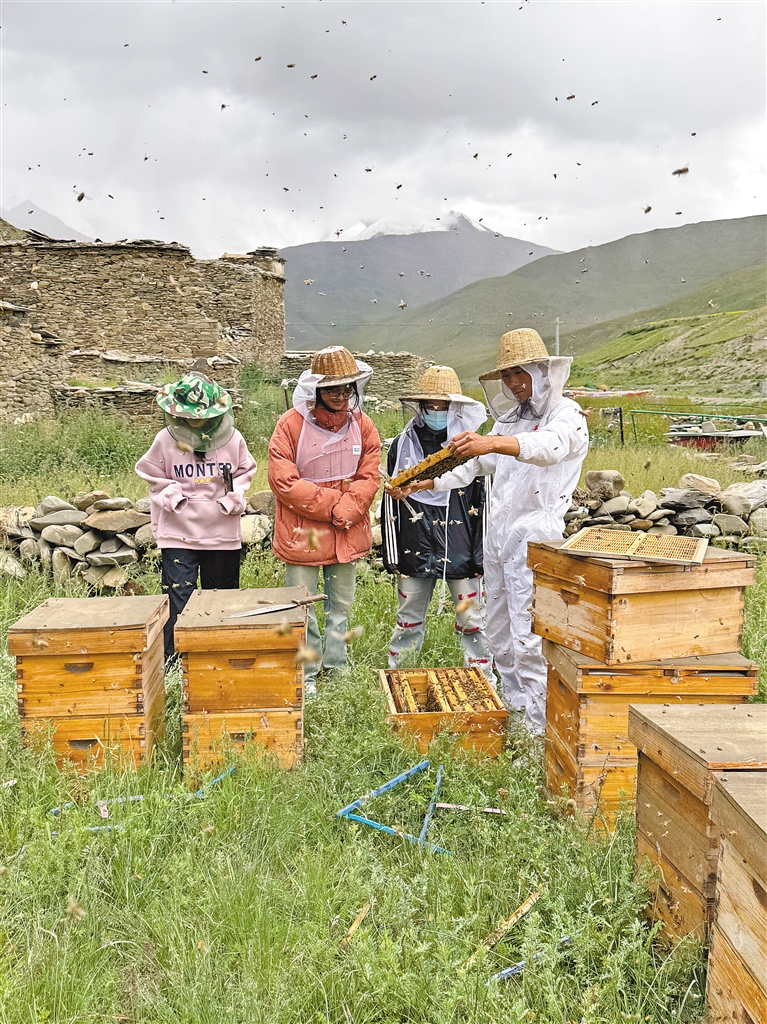 “蜂”產(chǎn)業(yè)激活鄉(xiāng)村振興“甜蜜動能”。走進(jìn)卡珠村的德康瓦蜜蜂養(yǎng)殖專業(yè)合作社養(yǎng)殖基地,一排排蜂箱整齊擺放,成群的蜜蜂穿梭在花叢間,振翅的嗡嗡聲交織成一曲熱鬧的豐收曲。負(fù)責(zé)人尼瑪桑旦,一位返鄉(xiāng)創(chuàng)業(yè)的95后大學(xué)生,正帶領(lǐng)員工們忙碌著:“我們創(chuàng)立了‘阿媽準(zhǔn)’藏蜜品牌,也在銷售風(fēng)干牛肉、人參果、蕁麻草等特色產(chǎn)品,通過電商平臺,我們的‘哲古味’已經(jīng)賣到了全國。去年銷售額突破了115萬元,還帶動了周邊10多戶群眾增收致富?!边@間小小的加工坊,正是哲古鎮(zhèn)推動傳統(tǒng)產(chǎn)業(yè)與現(xiàn)代市場接軌的生動縮影。