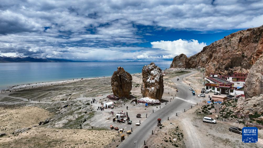 7月16日拍攝的納木錯扎西島景區(qū)風(fēng)光(無人機(jī)照片)。新華社記者 晉美多吉 攝