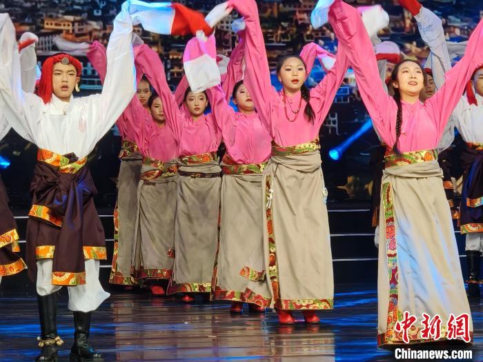 演出現場,西藏拉薩市娘熱鄉(xiāng)小學的孩子們帶來了古老藏戲《古韻新聲》,神秘面具與獨特唱腔展現雪域文化千年傳承;青海玉樹學子的《伊舞》以豪邁奔放的藏族民間群舞,舞動高原生活的熱情與祝福;內蒙古通遼蒙古族中學的《召日烏戈》將悠揚馬頭琴、震撼呼麥與繞口令藝術巧妙融合,奏響草原的生命韻律;新疆和田地區(qū)教育學院(師范學校)帶來的《灑滿陽光的和田》通過柔美與豪邁兼具的群舞,鋪展出一幅陽光普照、幸福滿溢的南疆風情畫卷;北京通州學子以長扇為筆、舞姿作墨,在《悠悠運河》中勾勒出千年漕運的水韻悠長。