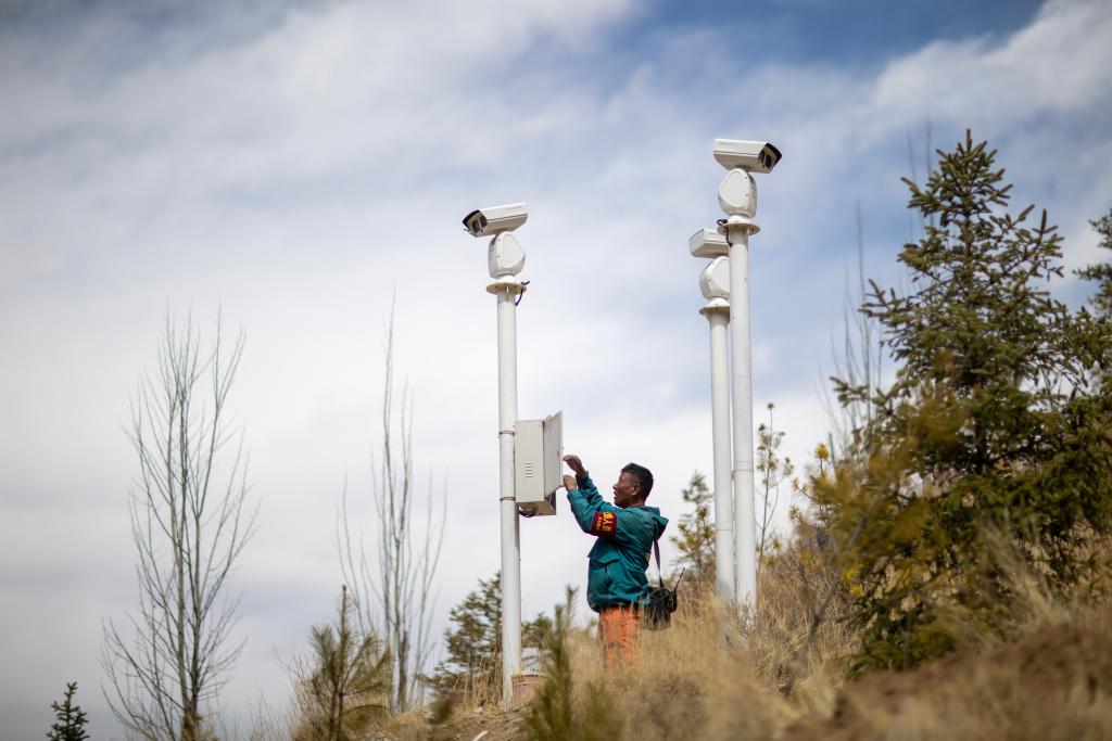 扎西曲培在南山公園檢修消防監(jiān)控裝置。新華社記者 姜帆 攝